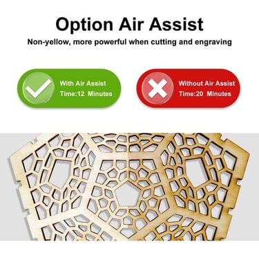 Beim Laserschneiden entstehen Rauch und Schmauchspuren, die die optische Qualität deiner Arbeiten stark beeinflussen und aufwendige Nachbearbeitung erfordern können. Mit Air Assist, also Druckluft, werden diese Schmauchspuren effektiv reduziert. Viele Lasercutter ermöglichen den Anschluss eines Kompressors, um den Air Assist zu nutzen. Es gibt verschiedene Optionen – hier stelle ich dir drei praktische Varianten vor.